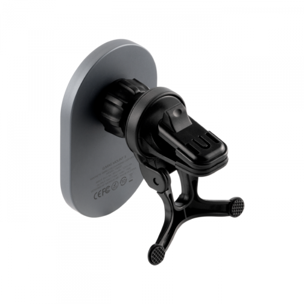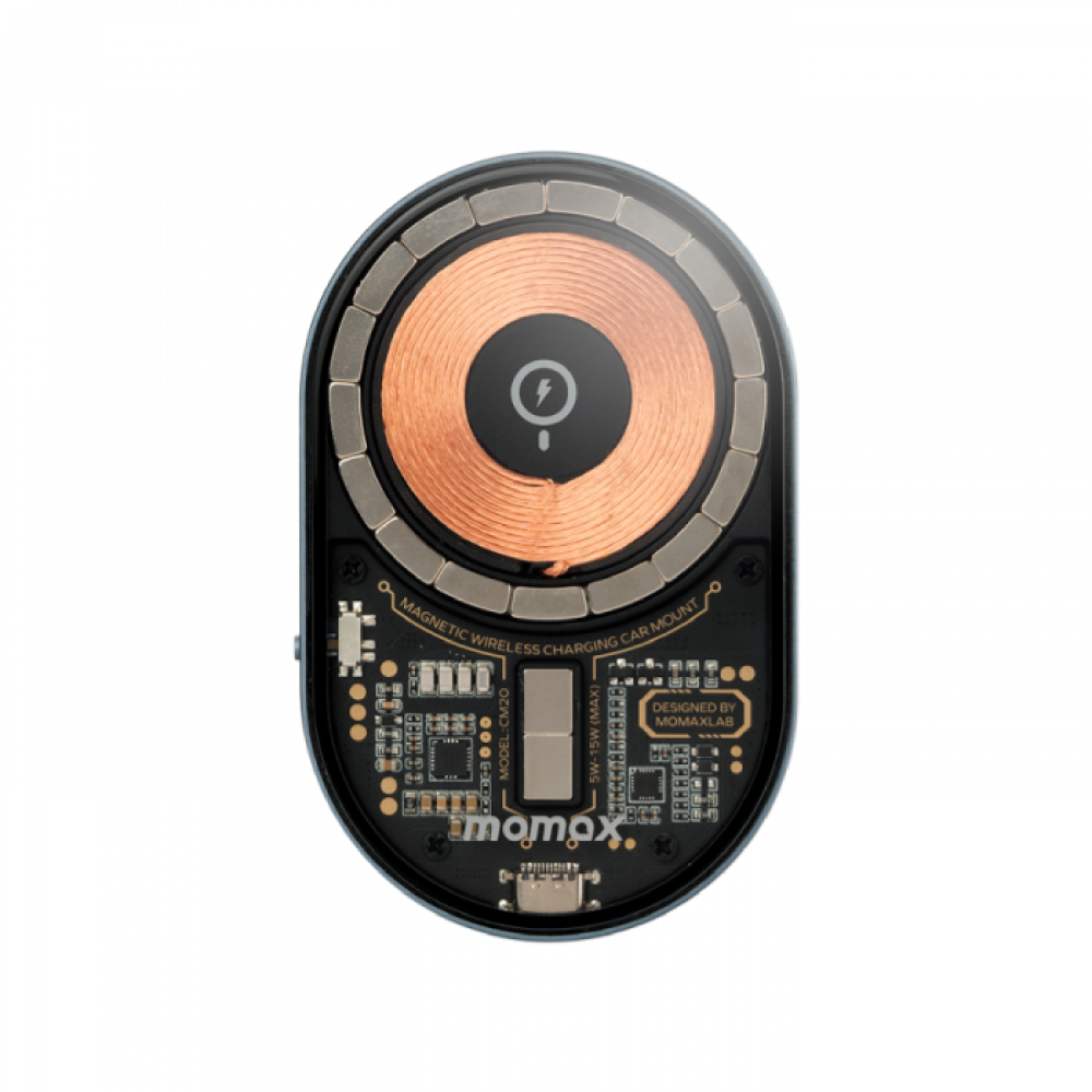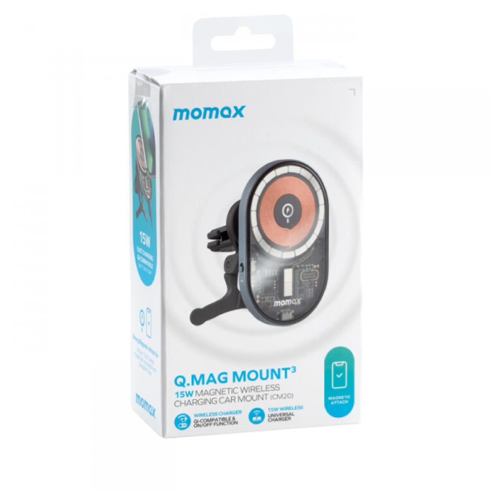 شاحن وحامل جوال موماكس مغناطيسي للسيارة 15 واط - رمادي